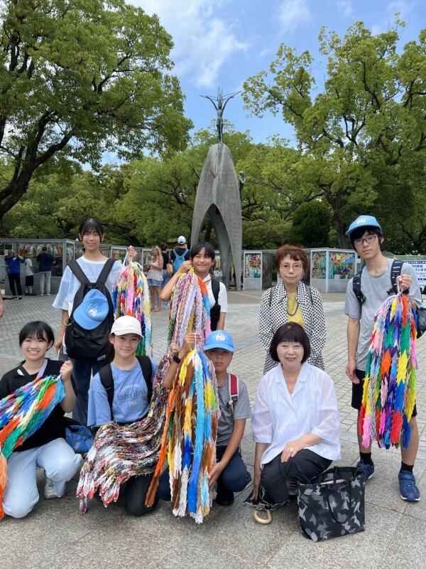 その後、一緒に平和公園へ行き、持ってこられた折り鶴と合わせて原爆の子の像に捧げました。