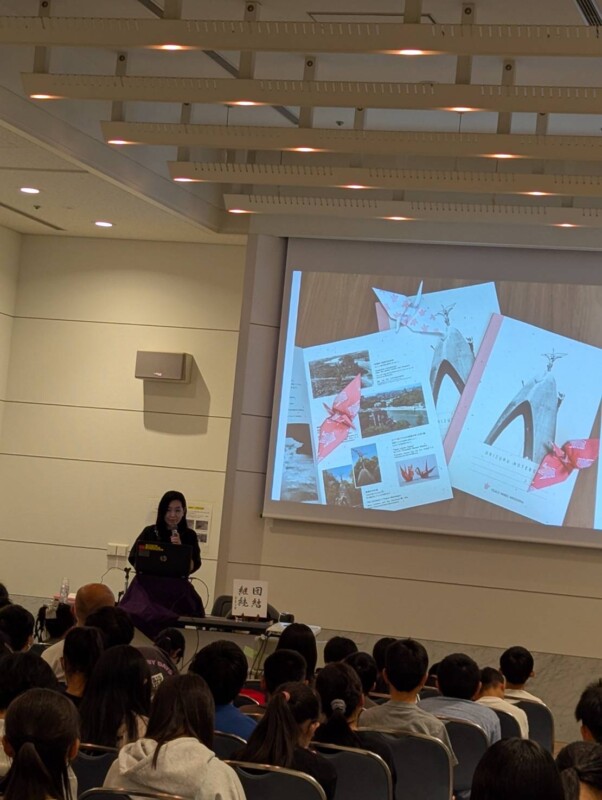 10月17日、貝塚市立東山小学校の平和学習が広島平和記念資料館メモリアルホールで行われ、128名の生徒さんに講演しました。今回は「原爆の子の像 語り部の会」の原紺充さんに講演いただきました。事前に生徒さんの人数分折り鶴ノートをお送りしていたので、最後に折り鶴ノートの紹介もさせていただきました。詳しくはこちら